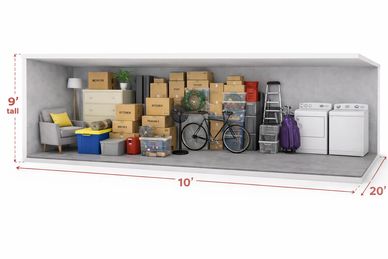 A 5x10 unit fits a mattress, small furniture, boxes, bikes, and luggage—ideal for a one-bedroom apartment, dorm room, or home office. 9' Tall Unit